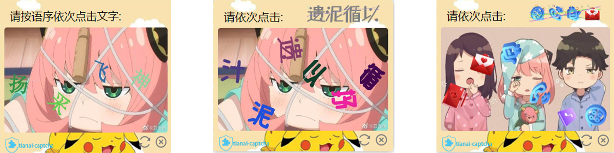 背景图片和验证码模板两种资源才能生成。- 背景图片:验证码中的背景图